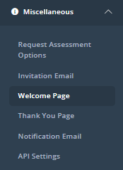 The welcome page settings can be found in the sidebar, under "Miscellaneous", here: