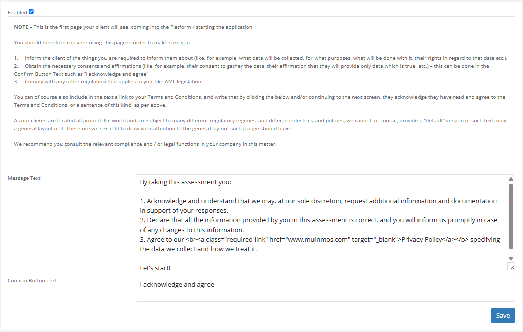 You also have the option to change the text that appears on the button that you must press in order to proceed to the assessment.