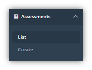 From the Assessment List, you can create a new assessment by clicking the “Create Assessment” button on the top left of the screen: