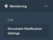 Document monitoring is configured in the "Document Notification Settings" page, found under "Monitoring" in the sidebar: