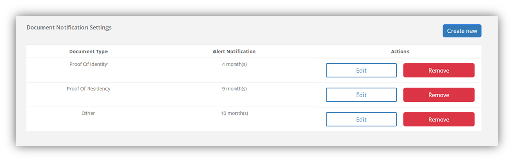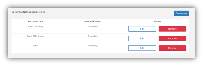 For Proof of Identity documents, you set a number of months before the document’s expiration date; you will receive a notification at that time.