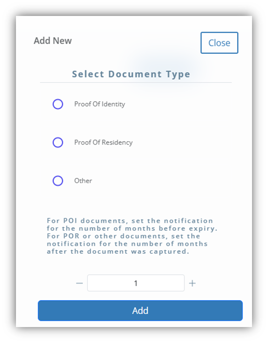 When setting the amount of months, please note the difference between how that count affects the notifications for PoI and PoR documents.
