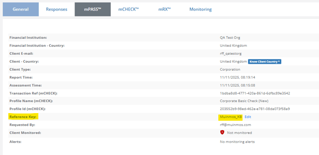 The Reference Key can also be found in the "General" tab of the assessment Report: